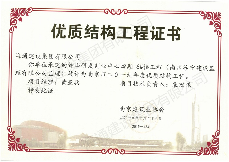 南京市優(yōu)質(zhì)結(jié)構(gòu)2019鐘山研發(fā)創(chuàng)業(yè)中心四期6#樓工程